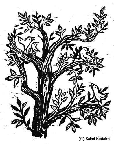 「収穫の木」 木版画