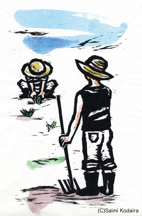 「耕す」 木版画