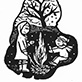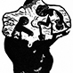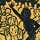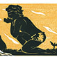 古代ギリシャの陶器を参考に、黄土色と墨の二版の木版画で、「走れメロス」独特の世界を表現してみました。