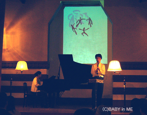 BABY in ME は、 妊娠初期の大切な時期に、まわりの人たちにさりげなくアピールすることのできるシンボルマークを提唱し、 妊婦さんの快適な生活を応援しています。 私もBABY in MEの活動に賛同し、横浜市にある大倉山記念館ホールでの新緑コンサートのお手伝いをさせて頂きました。 水彩で描いたイラストを元にphotoshopで加工した作品です。