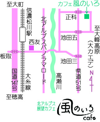 信州・池田町にある、北アルプス展望カフェ「風のいろ」にて個展を行います。 □ 北アルプス展望カフェ 風のいろ